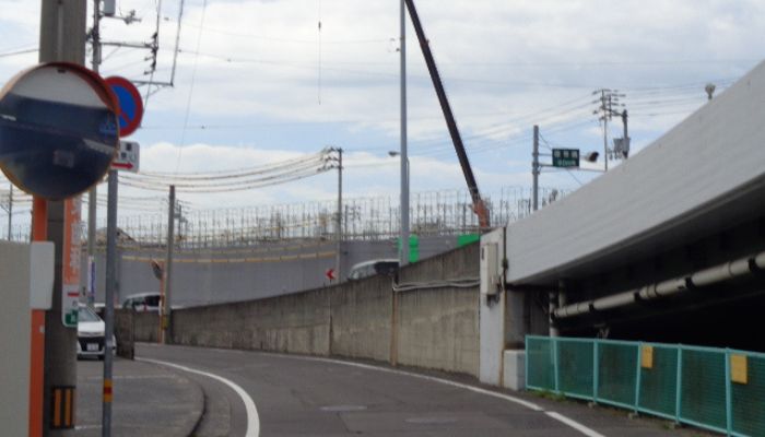 6.左側高架をくぐります
